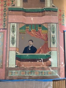 8, half moons in the cupola had heavy water damage and needed to be restored. I made a pounce pattern of the stenciled design to repeat over the missing areas. This project was under the direction of Spectra Company.